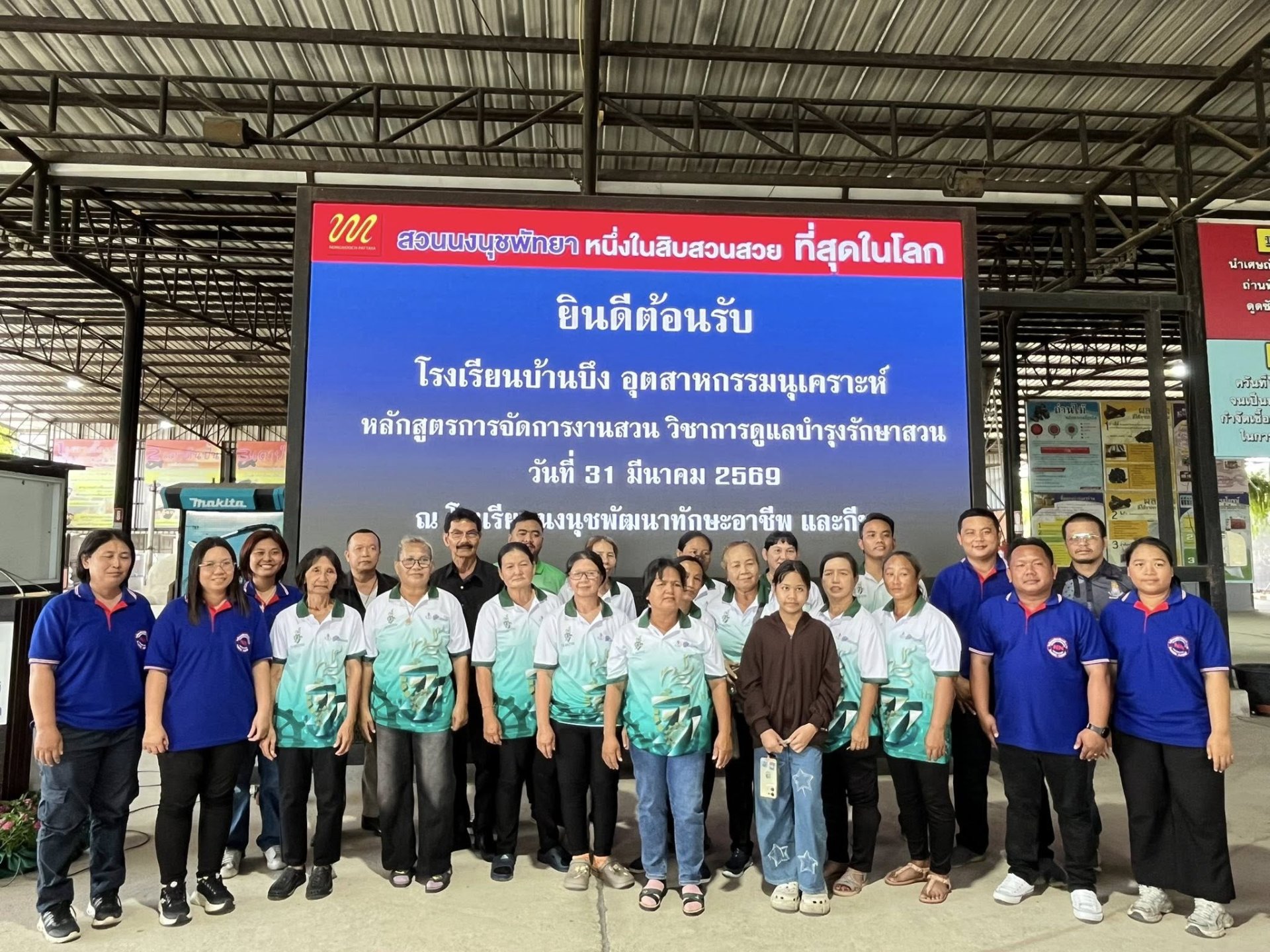 โรงเรียนนงนุชพัฒนาทักษะอาชีพและกีฬา ขอขอบคุณบุคลากรจากโรงเรียนบ้านบึง “อุตสาหกรรมนุเคราะห์” จังหวัดชลบุรี ที่เข้าร่วมกิจกรรมการเรียนรู้ภายใต้ 2 หลักสูตร ได้แก่ หลักสูตรการจัดการงานสวน และ หลักสูตรการทำความสะอาดแบบมืออาชีพ